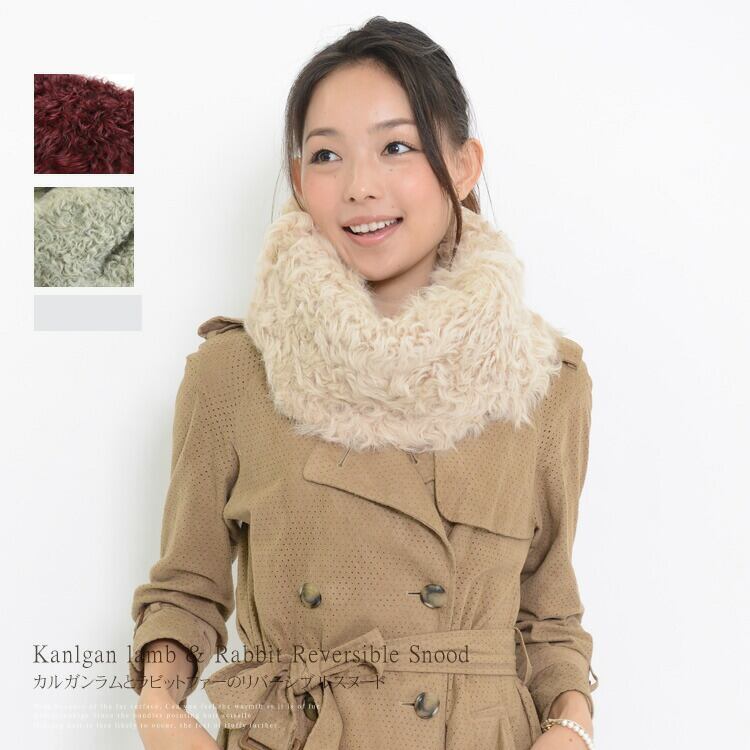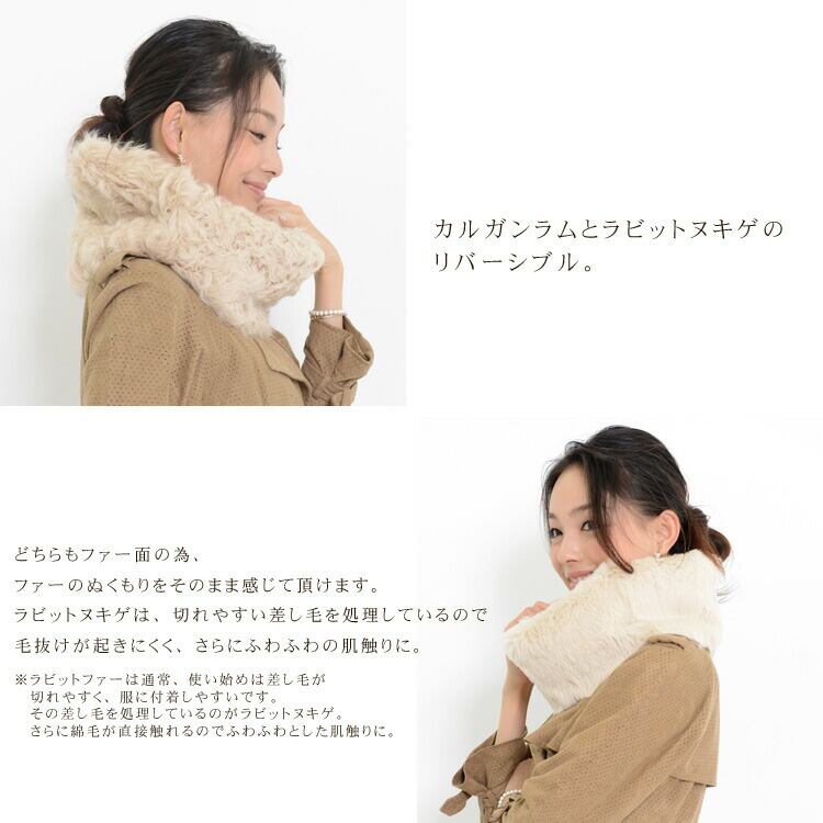 スヌード ファー カルガンラム ラビット リバーシブル マフラー レディース ギフト プレゼント