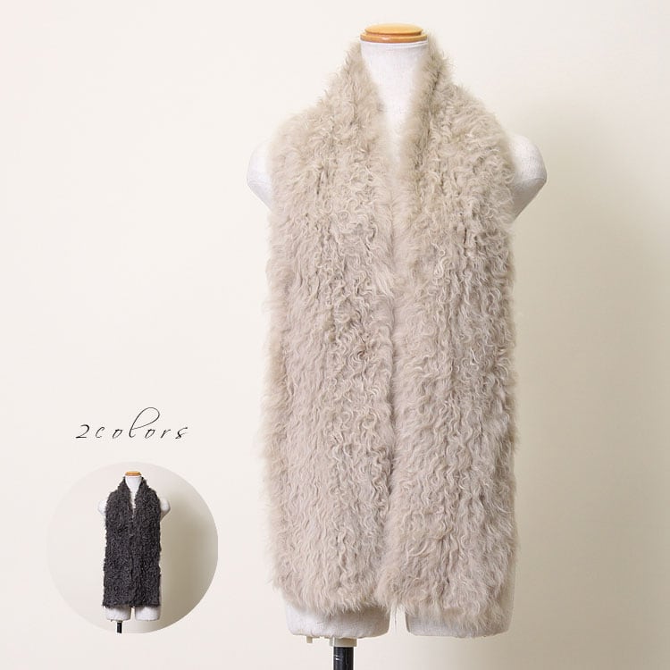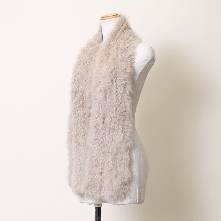 母の日 / 毛先がクルリとカールした、可愛らしい巻き毛が特徴のカルガンラムファーストール。大判ながら編み込みによるニッティング製法により、軽くて柔らかく、様々なスタイリングをお楽しみいただけます。