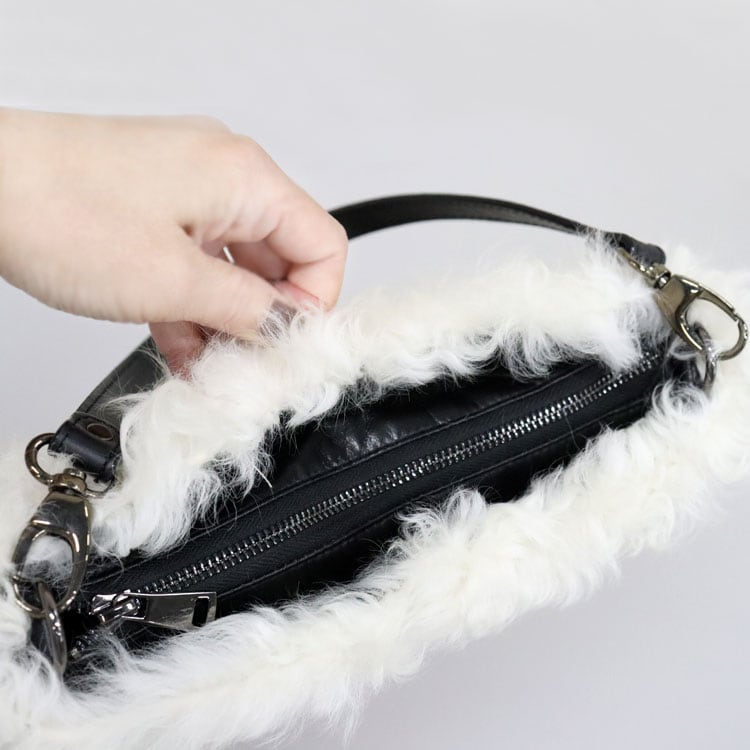 KL29ANABB1037 ファーバッグ ショルダーバッグ ハンドバッグ カルガンラム ホワイト 手提げ リアルファー 送料無料 レディース プレゼント