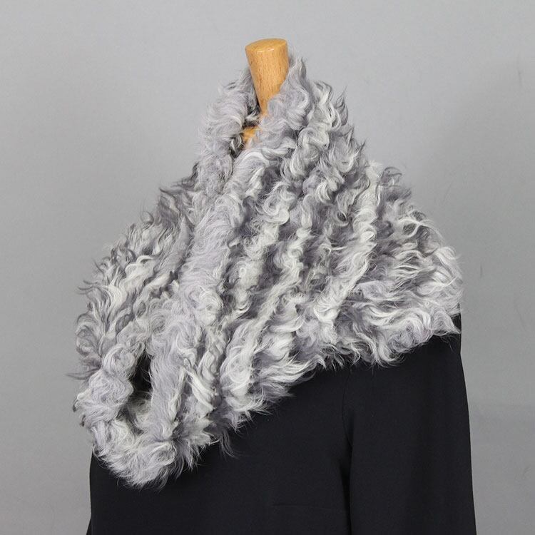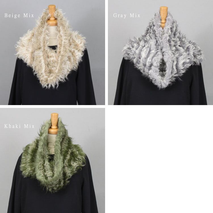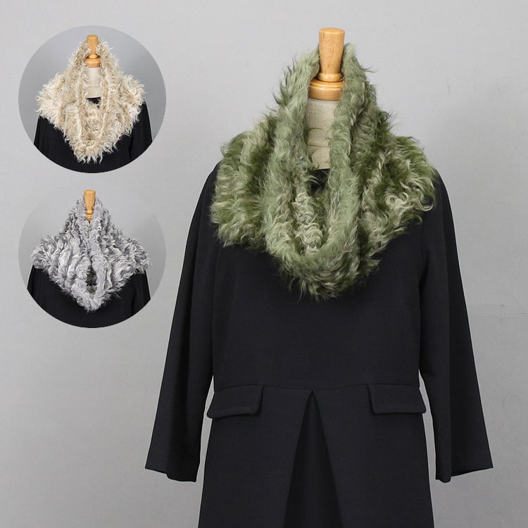 母の日 / クルクルとした毛先が可愛らしいカルガンラムを使用した筒状のファースヌード。編み込みなので非常に軽やか。濃淡のあるライン状の色合いも美しく、普段の装いに加えるだけで上品な雰囲気に。