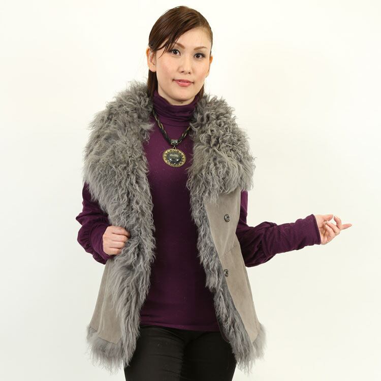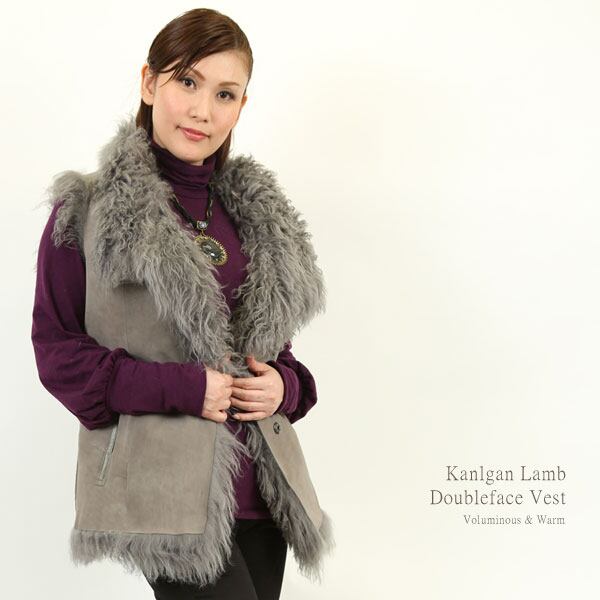 母の日 / ギフト / プレゼント / セール / 敬老の日 / ボリューミーなカルガンラムを贅沢に使用したWフェイス加工のベストです。優しい肌触りと温かさはWフェイスならでは。しっかりした裏地とラムの優しい温かさは貴方をしっかり暖めてくれます。