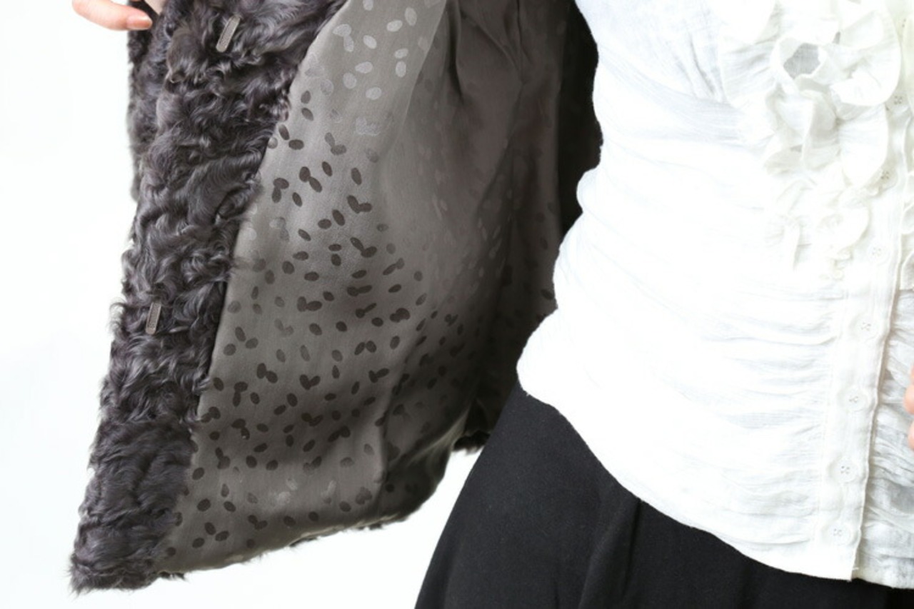 母の日 / ギフト / プレゼント / セール / 敬老の日 / クルリとカールしたカルガンラムが可愛らしいファージャケットです。しっかりとした裏地が貴方を優しく暖めてくれます。