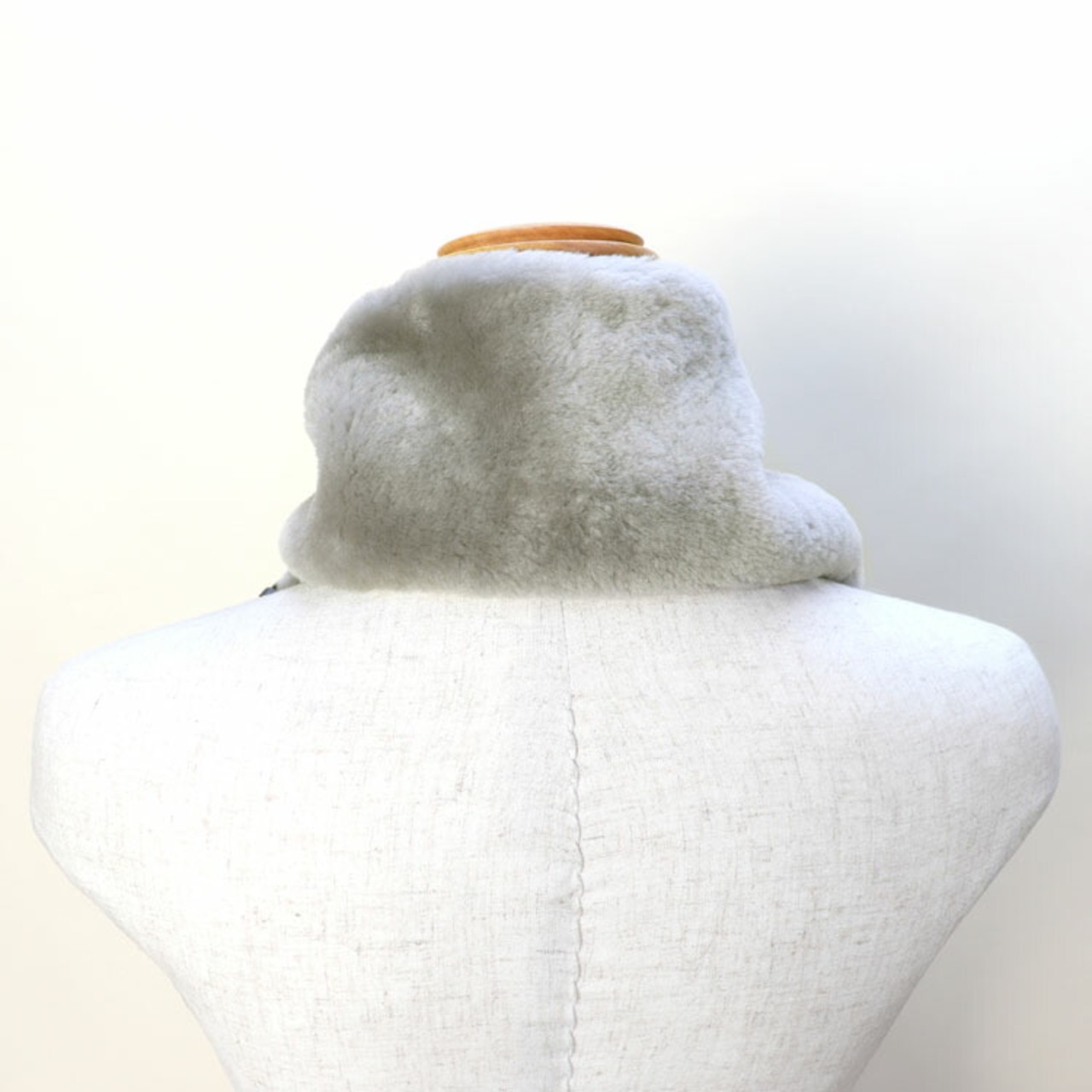 柔らかなムートンラムのファー面とスエード加工レザー面を使ったファーマフラーです。シンプルなデザインに落ち着いた色合いで、男性、女性を問わずお使い頂けます。
