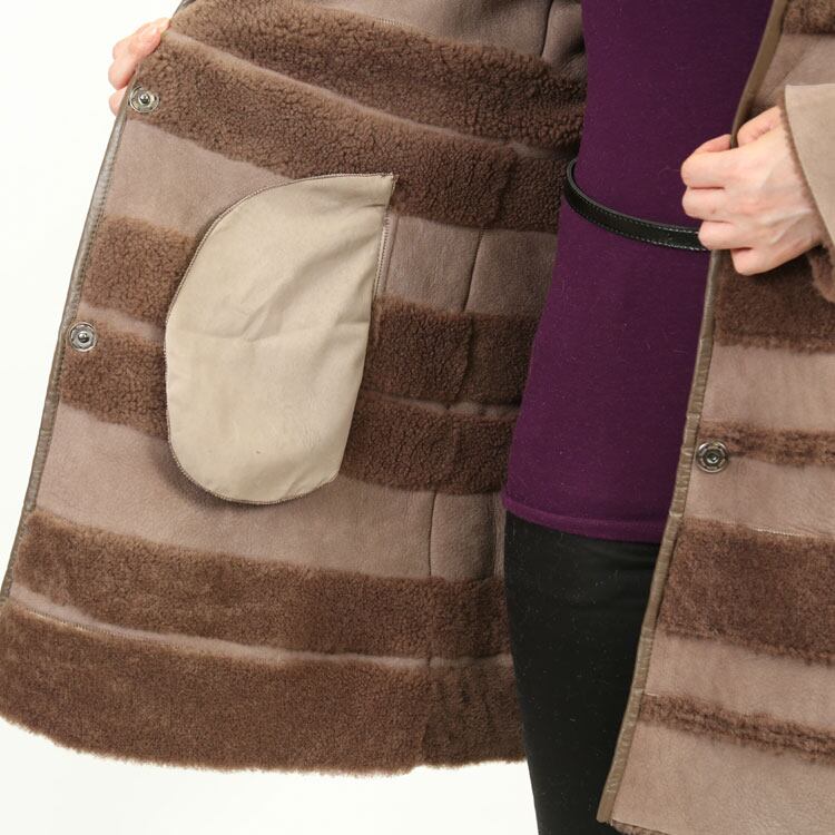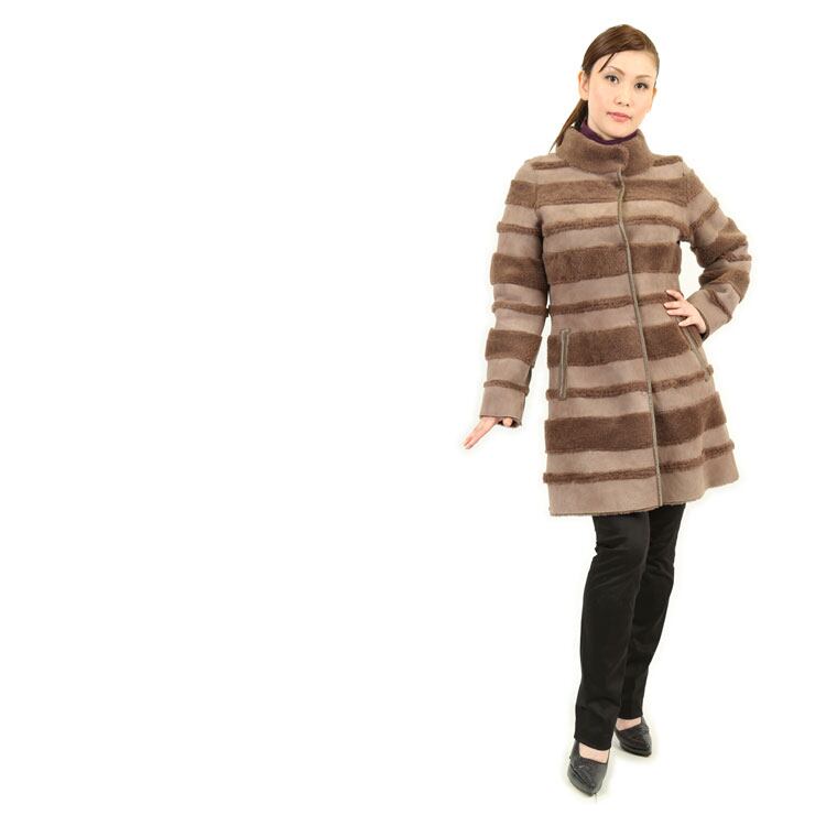 ムートン ファー コート ボーダーデザイン モカ 送料無料 レディース ギフト プレゼント