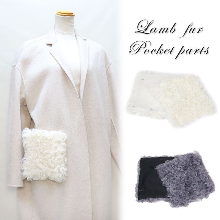 カルガンラム ファー 手芸 ポケット 飾り パーツ 左右ペア アクセサリー 日本製 ラム レディース ギフト プレゼント ポケット ポケットファー コート アレンジ フェイク フェイクポケット LM5371