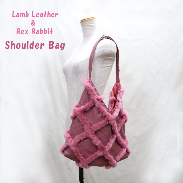 ラムレザーとレッキスラビットのショルダーバッグです。ラム、レッキスともに手触りがとても柔らかで、コンパクトに折りたたんで持ち運ぶ事も出来ます。ショルダーベルトの長さも自由に変えられるので、斜め掛けにしてメッセンジャーバッグとしてもお使いいただけます。
