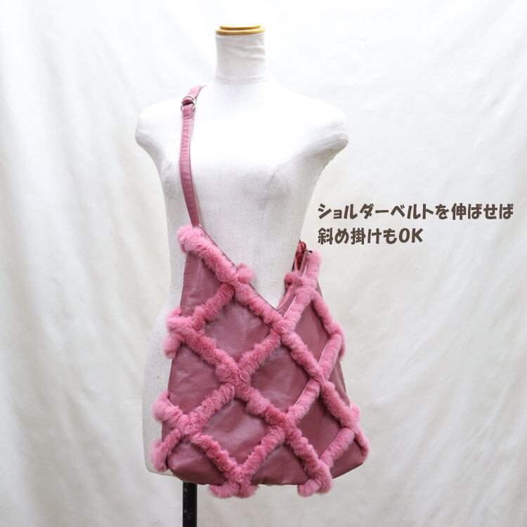 レッキス ファー ラムレザー 2way ショルダーバッグ ダスティーピンク レディース 送料無料 ギフト プレゼント