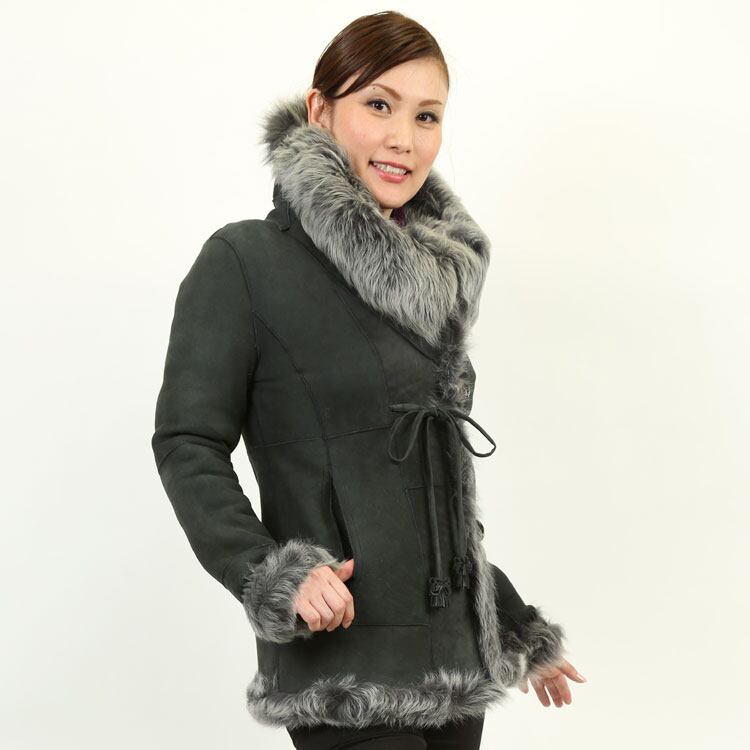 LM982CAGY1063 ラム ムートン トリミング ファー ジャケット グレー 送料無料 レディース ギフト プレゼント