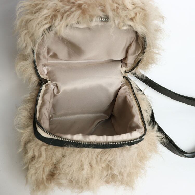 柔らかな毛質とクルクルとした巻き毛がとっても可愛らしいカルガンラム。そんなカルガンラムを使って、コロンとしたインパクトたっぷりのキューブ型のバックを作ってみました。持ち手は付け替え可能な2way仕様。個性的なフォルムは、お化粧ポーチとして、または小物入れとして、お部屋に置いておくだけで気分が上がりそうです。
