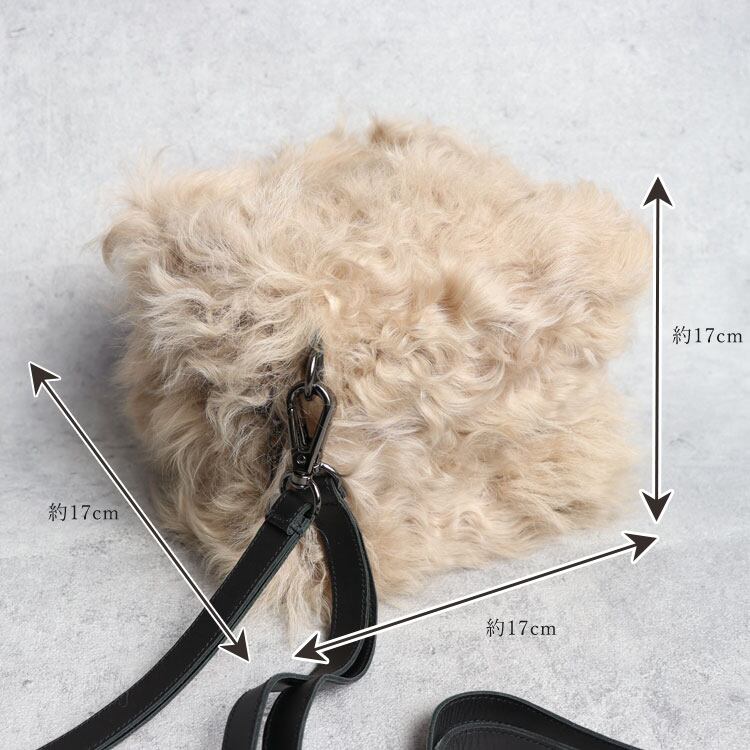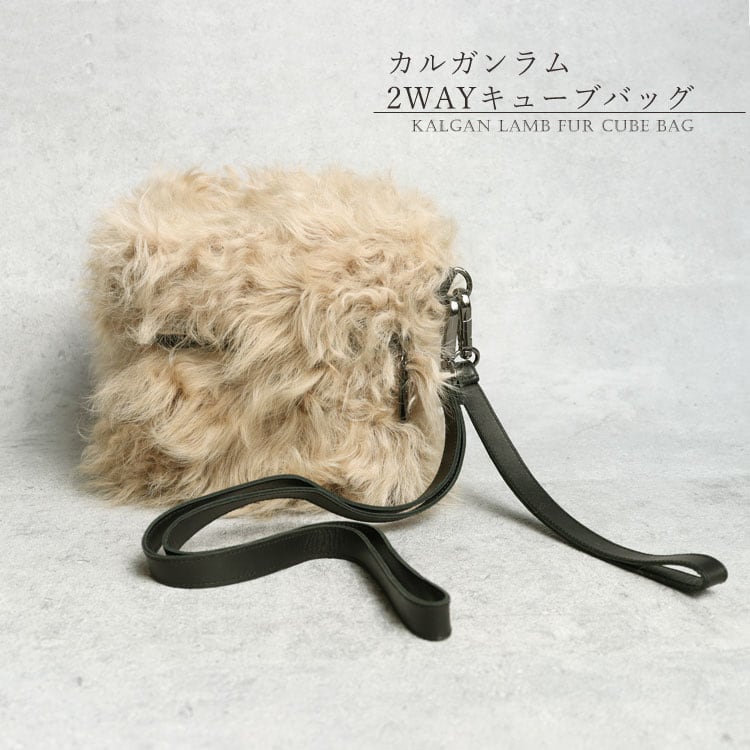 カルガンラム 2way キューブ型 ファー バッグ ベージュ ショルダーバッグ ポーチ 送料無料 レディース ギフト プレゼント