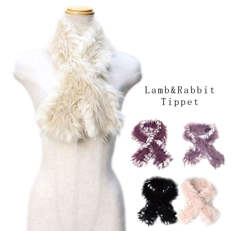 マフラー ファー ラム ラビット レディース ギフト プレゼント ショート ティペット ピンク ベージュ パープル ブラック LMCL11