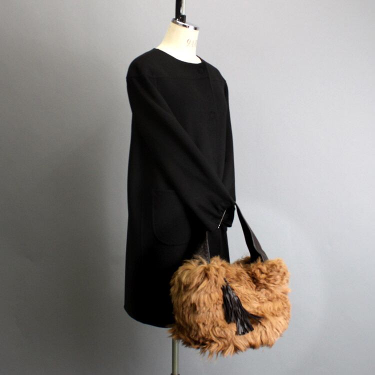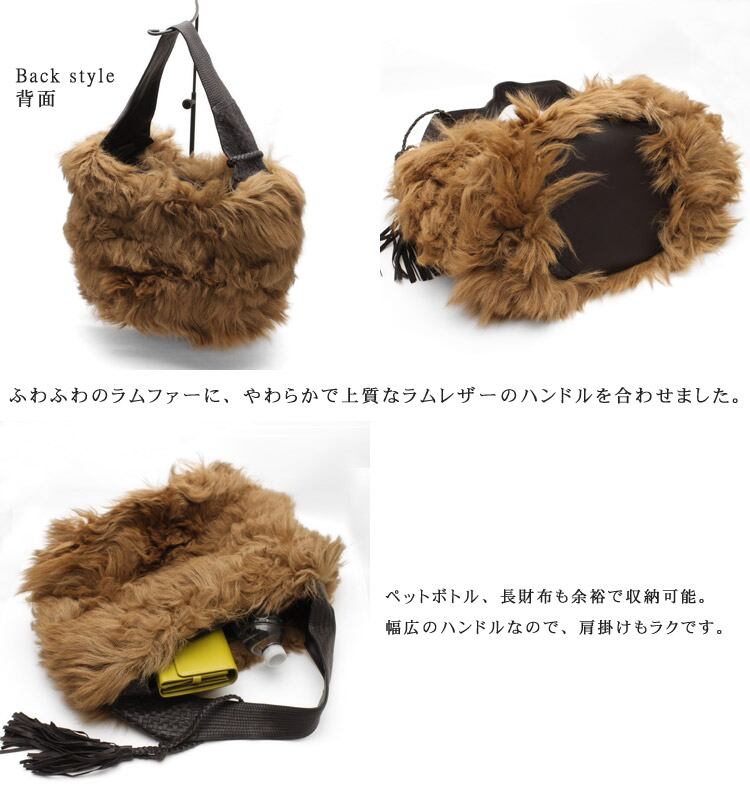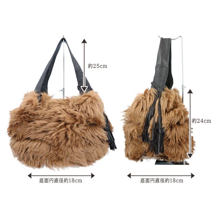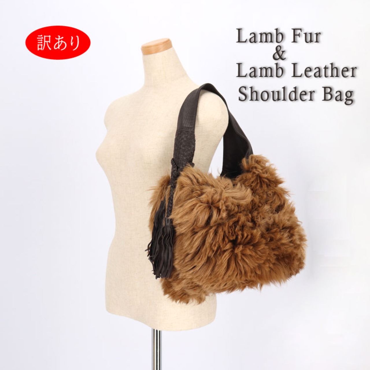 訳あり ラムファー ラムレザー BAG ショルダーバッグ 大きめ フリンジ付き キャメル レディース