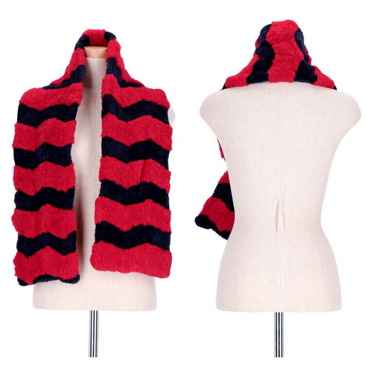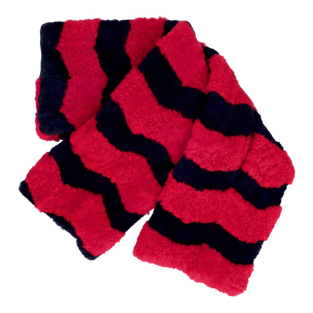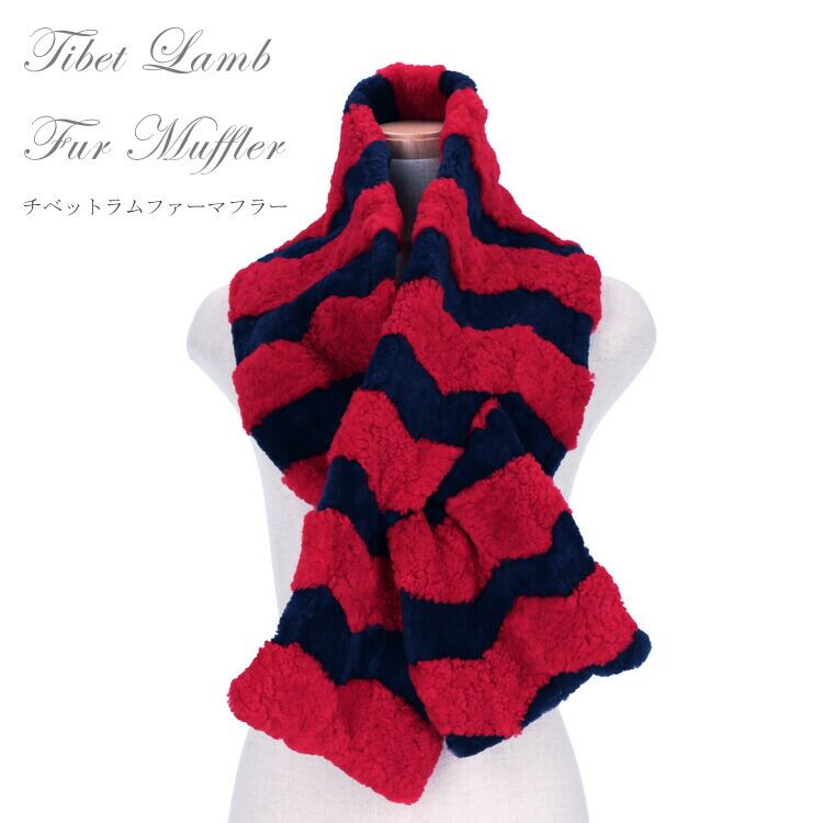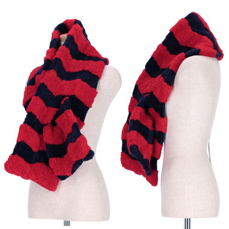 もこもことしたボリューム感満点で可愛らしいラムを使用したファーマフラーです。少し硬めの質感ですが、その厚みによる保温力は抜群。レッドとネイビーのダブルカラーなので個性◎もこもこで暖かいラムは男女問わずプレゼントにもオススメです。