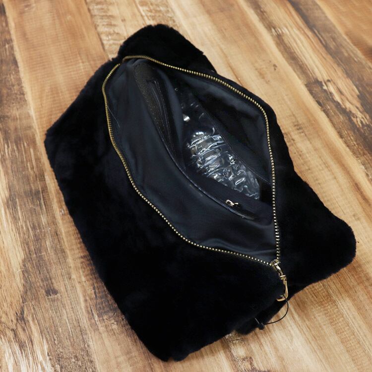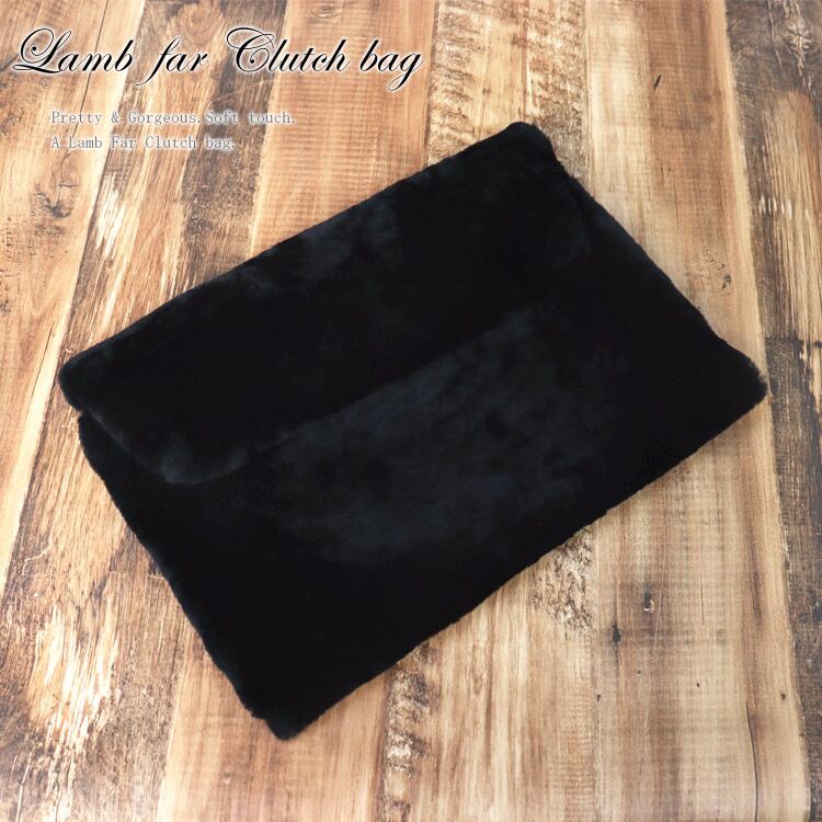 ラム ファー クラッチバッグ ブラック 送料無料 パーティー レディース ギフト プレゼント