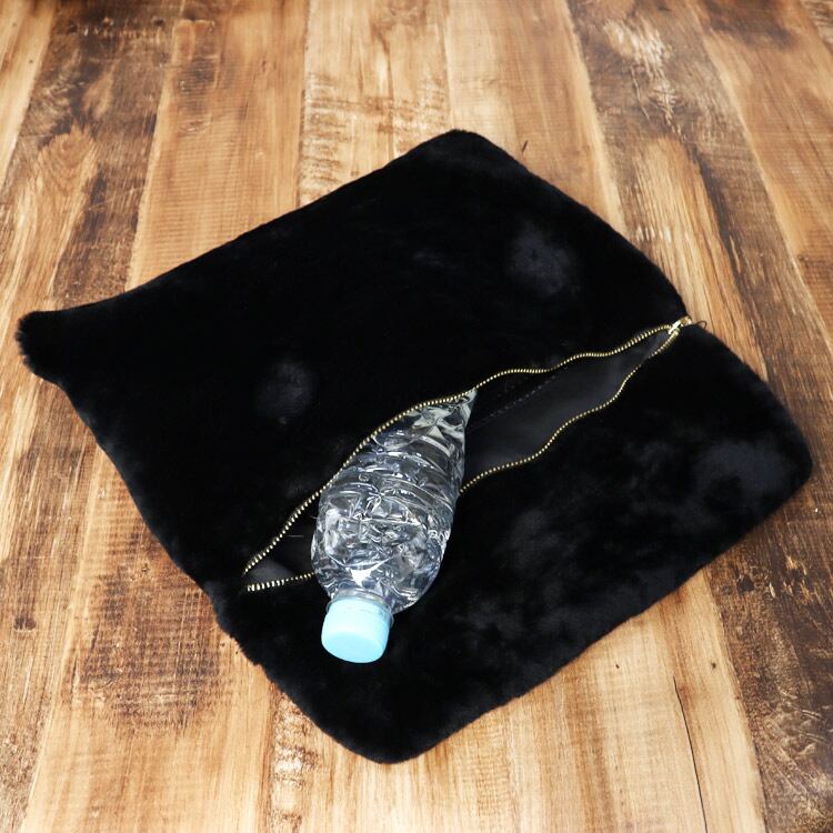 ふんわりと可愛らしいラムファーを使用した個性的なクラッチバッグです。芯が無くとっても柔らかいので、形は自由自在に変形します。500mlのペットボトルや長財布も入るので、結婚式の二次会などパーティでも大活躍。