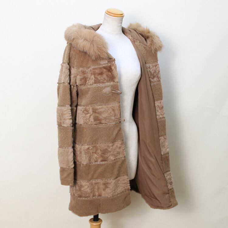 【サイズ(最大部を計測)】肩幅約39cm 身幅約90cm 着丈約81cm 袖丈約60cm 【重さ】約1000g 【ポケット】外側2つ 【留め具】ボタン×1・トグルボタン×3 【裏地】有り 【素材】パールラム・レッキスラビット 【生産国】中国