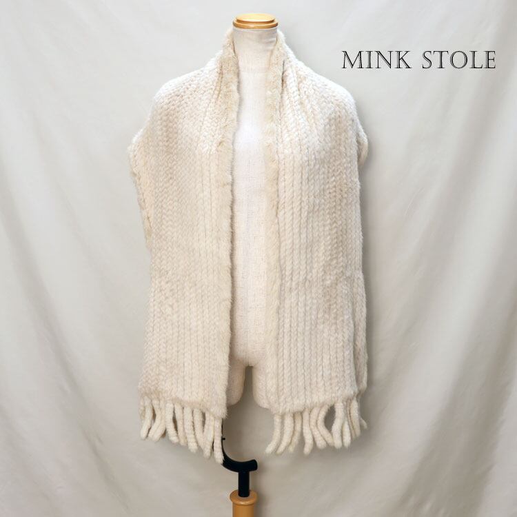 ミンク ファー 編み込み 大判 ストール パール ベージュ 送料無料 レディース ギフト プレゼント