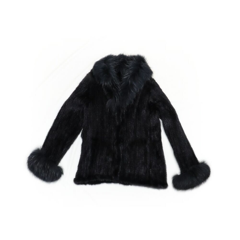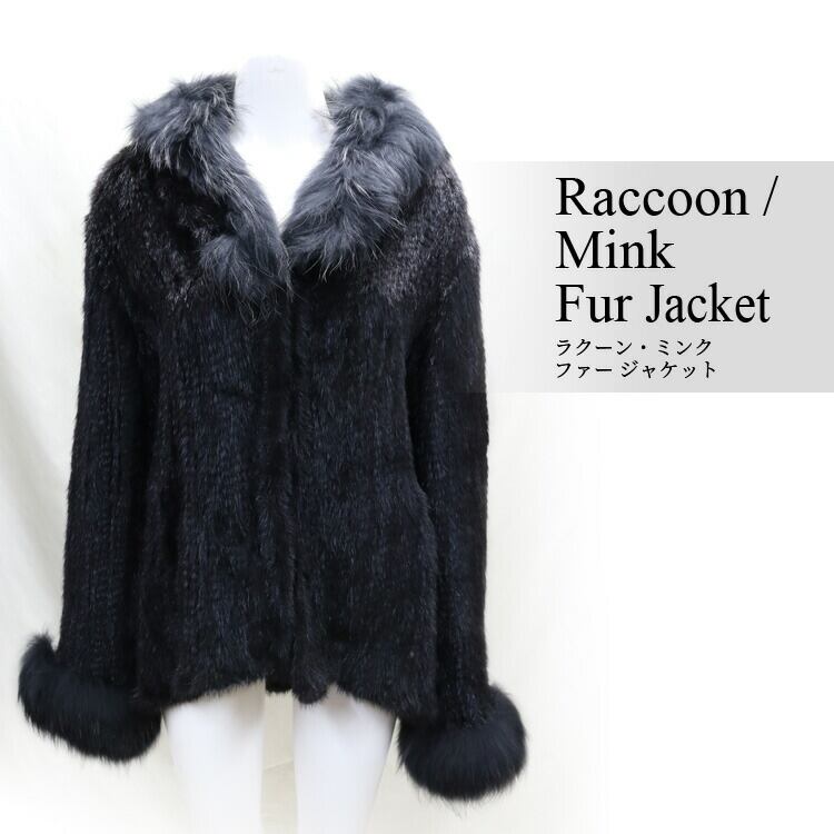 MK052CA ラクーン 襟 ミンク 編み込み ファー ジャケット ブラック 送料無料 レディース ギフト プレゼント