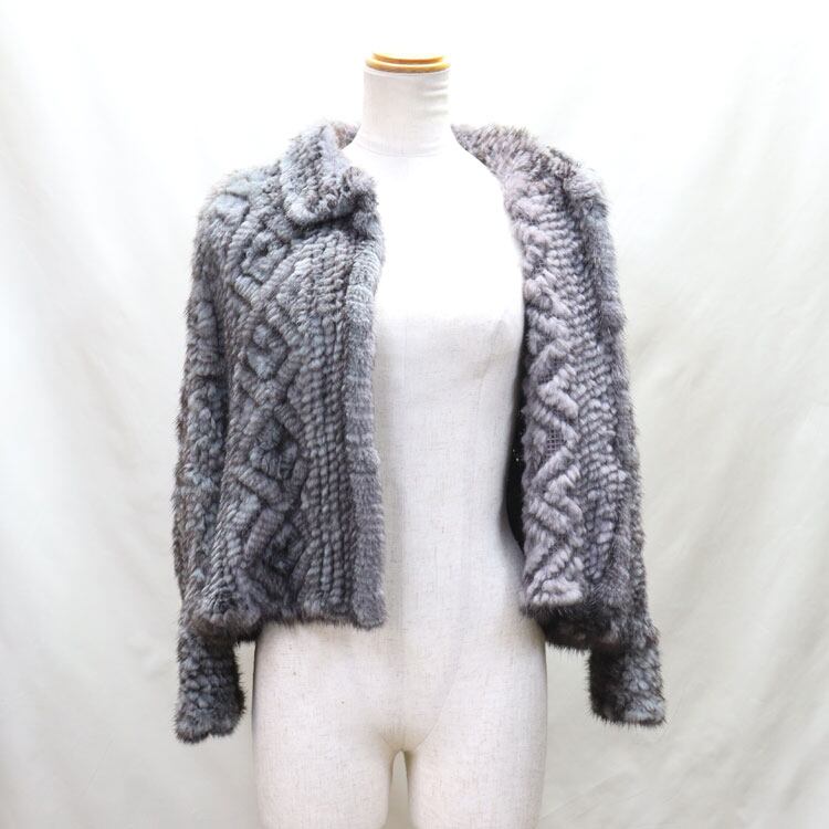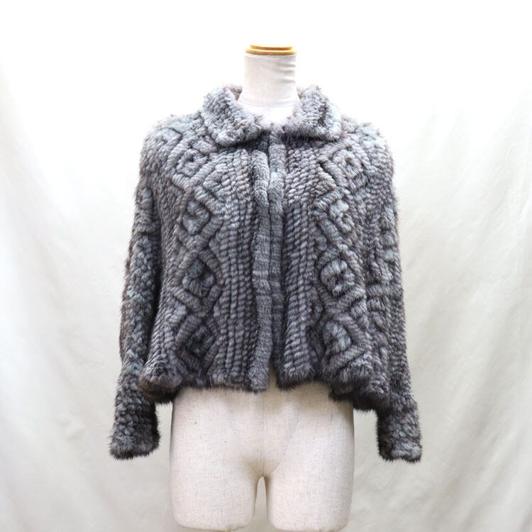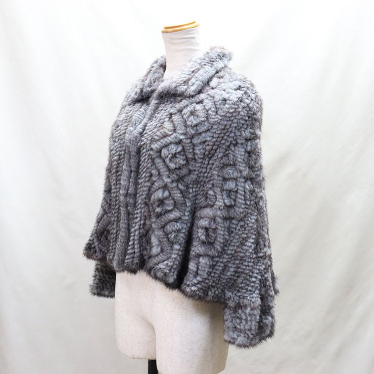 訳あり ミンク 編み込み ファー ケープ グレー 送料無料 レディース ギフト プレゼント