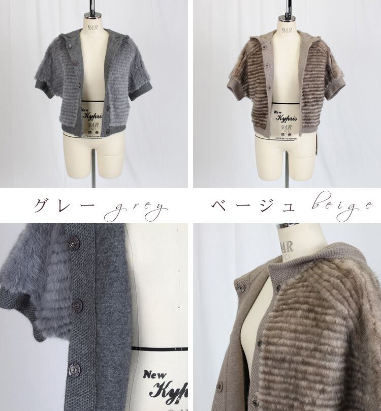 ミンク ファー カシミヤ混 ニット フード ジャケット ショートタイプ グレー ベージュ 送料無料 レディース プレゼント MK0835
