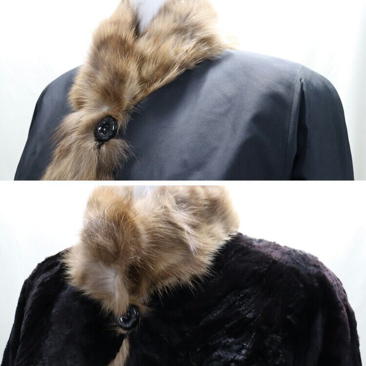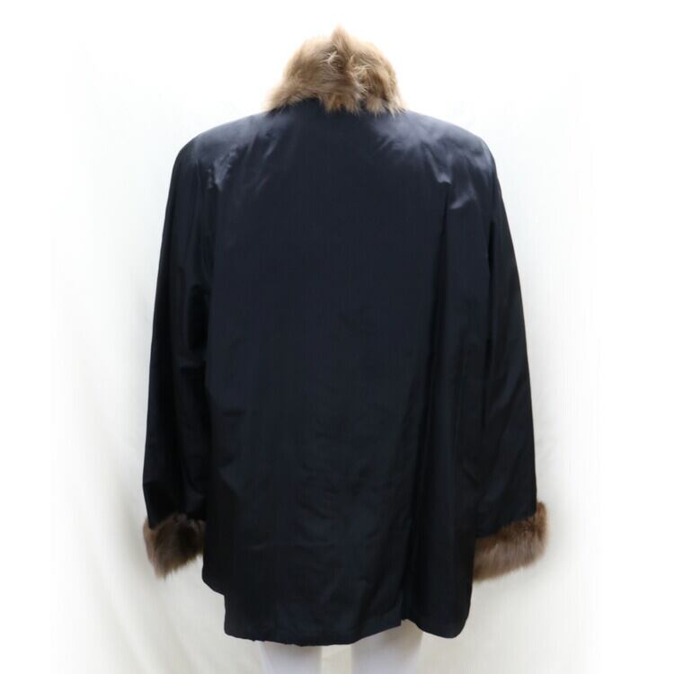 【サイズ(最大部を計測)】着丈約71cm 身幅約114cm 肩幅約40cm 袖丈約63cm 【重さ】1010g 【内側ポケット】2つ 【外側ポケット】2つ 【留め具】ボタン×3 【裏地】リバーシブル 【素材】ミンク、シルク
