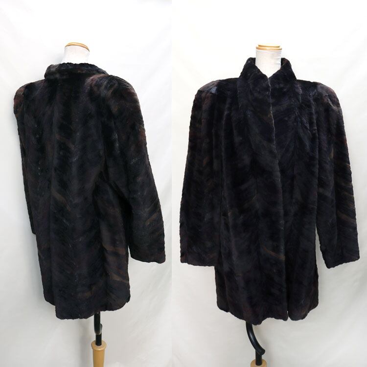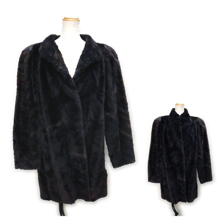 【サイズ(最大部を計測)】着丈約80cm 身幅約100cm 肩幅約47cm 袖丈約59cm 【重さ】約1125g 【内側ポケット】1つ 【外側ポケット】2つ 【留め具】ホック×3 【素材】ミンク 【裏地】有り 【仕様】肩パッド入り