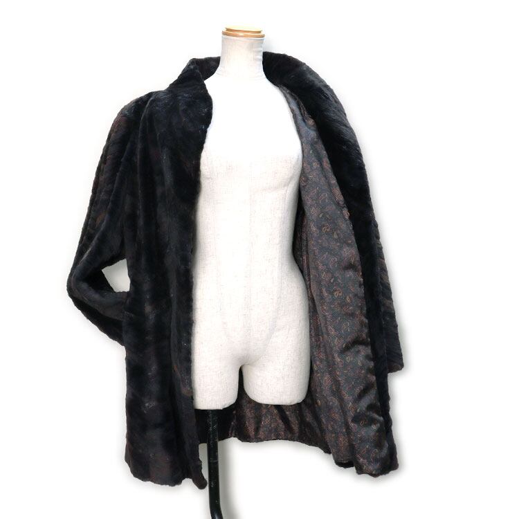 ミンク ファー コート ブラック ブラウン系 肩パッド入り ジャケット ビッグシルエット オーバーサイズ 柄入り 送料無料 レディース ギフト プレゼント