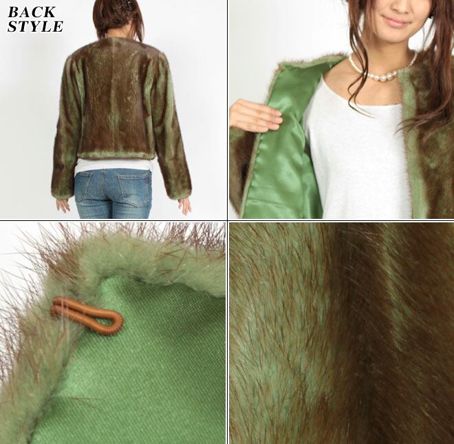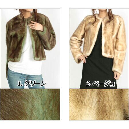 ノーカラー ミンク ファー ジャケット ショート丈 ブラウントップ 送料無料 レディース ギフト プレゼント MK1415
