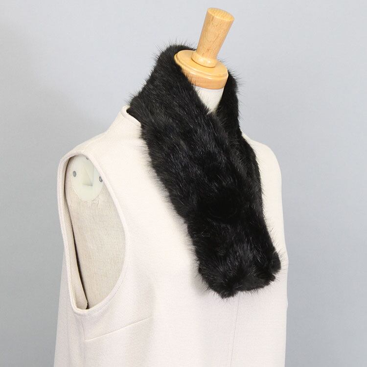 MK1691ABK1037 ミンク 編み込み ファー マフラー コサージュ飾り付 ブラック 送料無料 レディース ギフト プレゼント