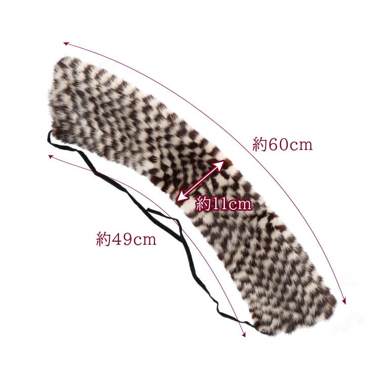 【サイズ(最大部を計測)】全長(最大)約60cm 幅約11cm 【重さ】約65g 【留め具】リポン1組 【裏地】有り 【素材】ミンク