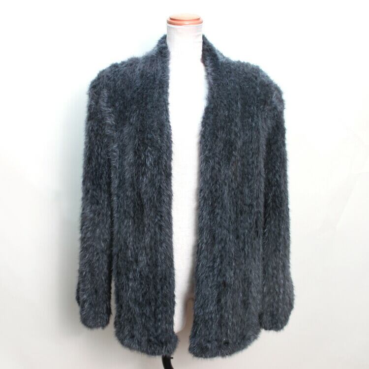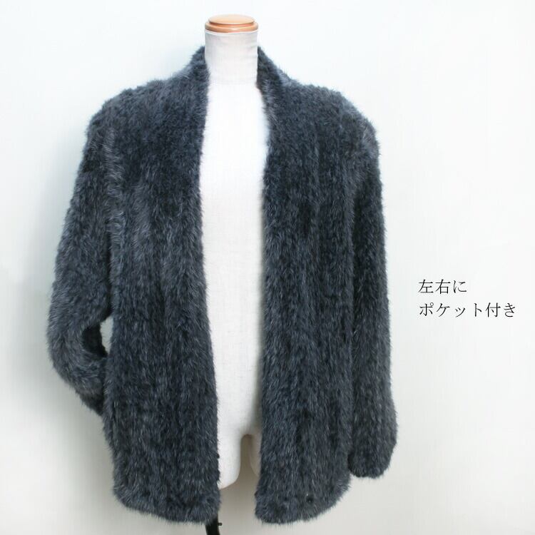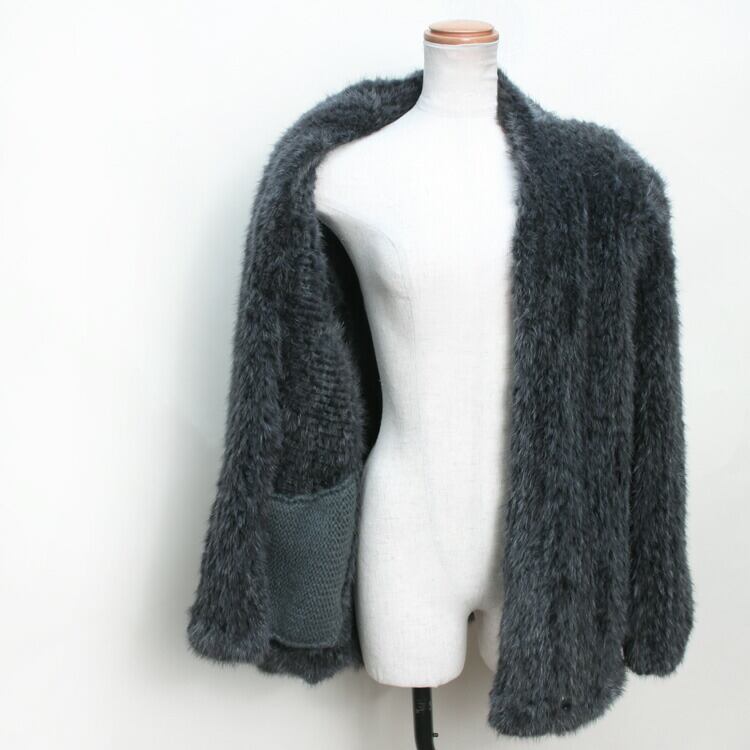 ミンク 編み込み ファー ジャケット グレー 送料無料 レディース ギフト プレゼント ニット 肩パッド入り