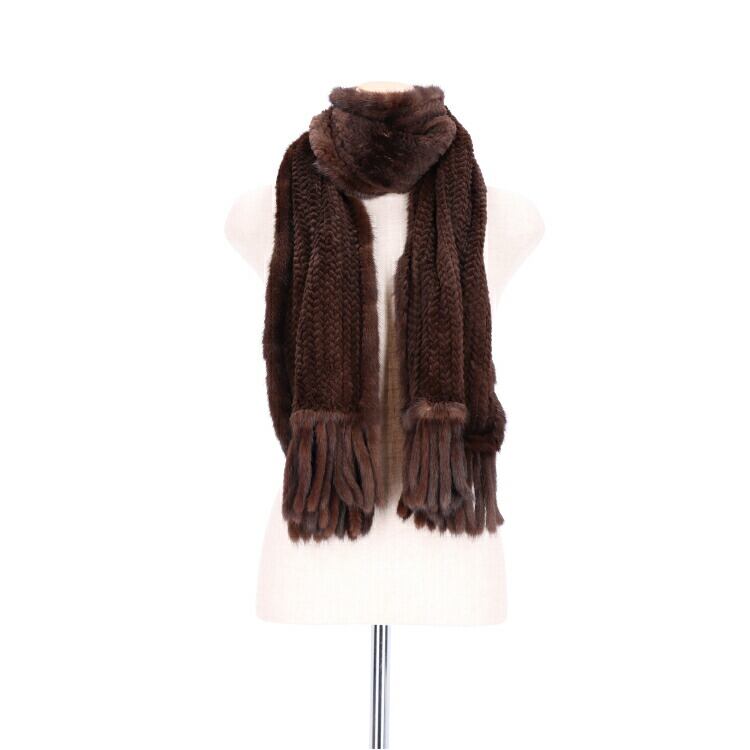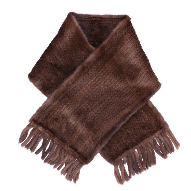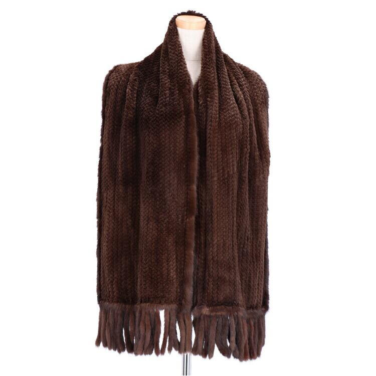 ミンク 編み込み ニッティング ファー ストール フリンジ付 ダークブラウン 送料無料 レディース ギフト プレゼント