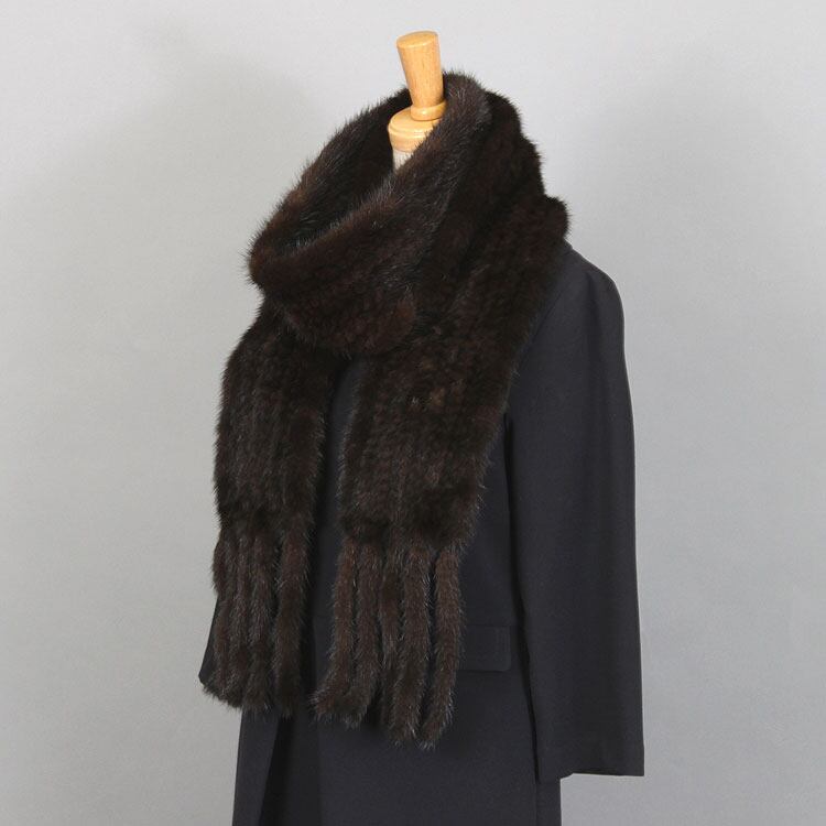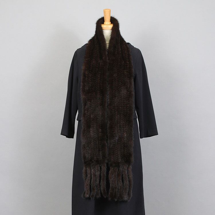 ミンク 編み込み ファー マフラー ダークブラウン MK4121