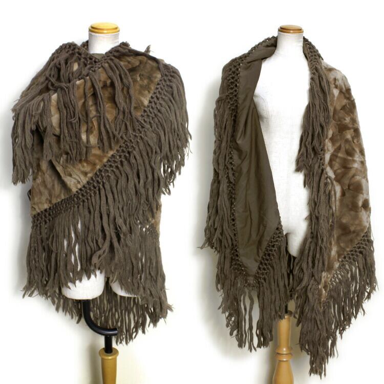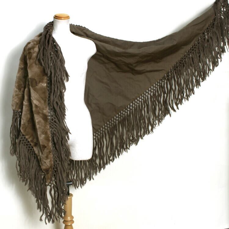 【サイズ(※毛を含む)】長さ約200cm 幅(最長部分)約78cm フリンジ長さ約23cm 留め具無し 裏地有り