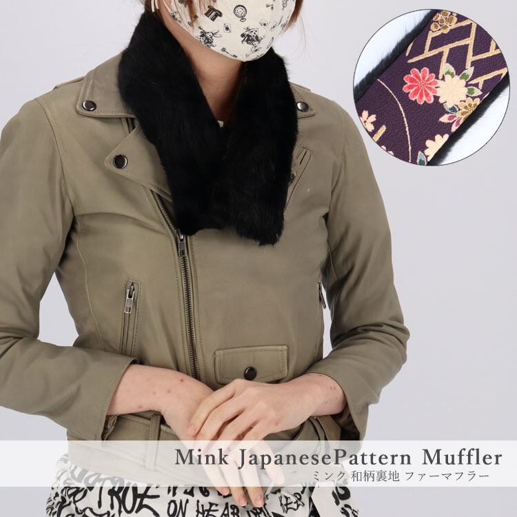 宝暦シリーズ ミンク ファー マフラー ブラック 和柄裏地 ファー襟 日本製 レディース ギフト プレゼント MK4682