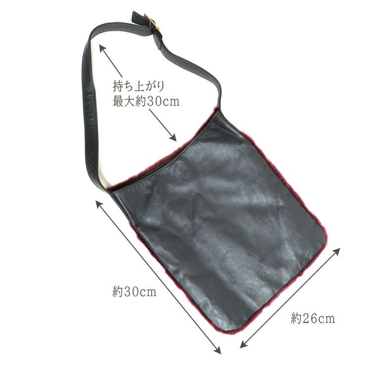 【サイズ(最大部を計測)】縦幅約30cm 横幅約26cm ショルダーベルト持ち上がり最大約30cm 【重さ】約150g 【内側ポケット】オープンポケット×1 【外側ポケット】無し 【留め具】マグネットボタン【裏地】有り 【素材】ミンク、羊革