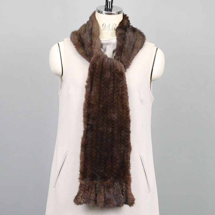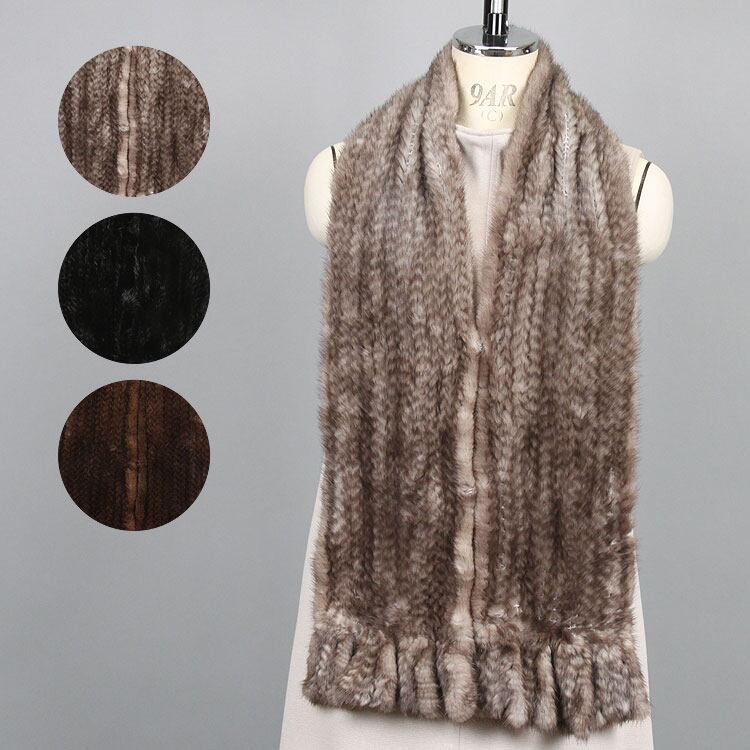 MK65A1A ミンク ファー ニッティング ロング マフラー ストール 太めフリンジ付 送料無料 レディース ギフト プレゼント