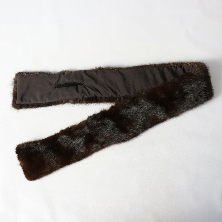 【サイズ(※最大部を計測)】毛先を含む:長さ約95cm 幅約9cm / 裏地のみ:長さ約93cm 幅約7cm 【重さ】約85g 【留め具】通し穴(スリット)×1 【素材】ミンク 【裏地】有り