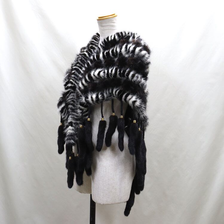 ヨーロピアンスタイル ミンク ファー ショール ケープ ブラック ホワイト 送料無料 レディース ギフト プレゼント