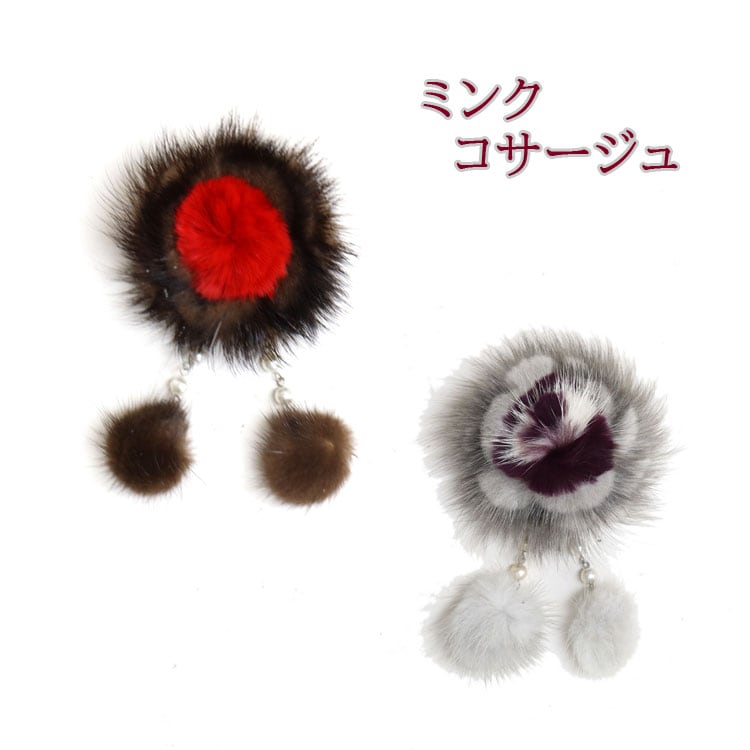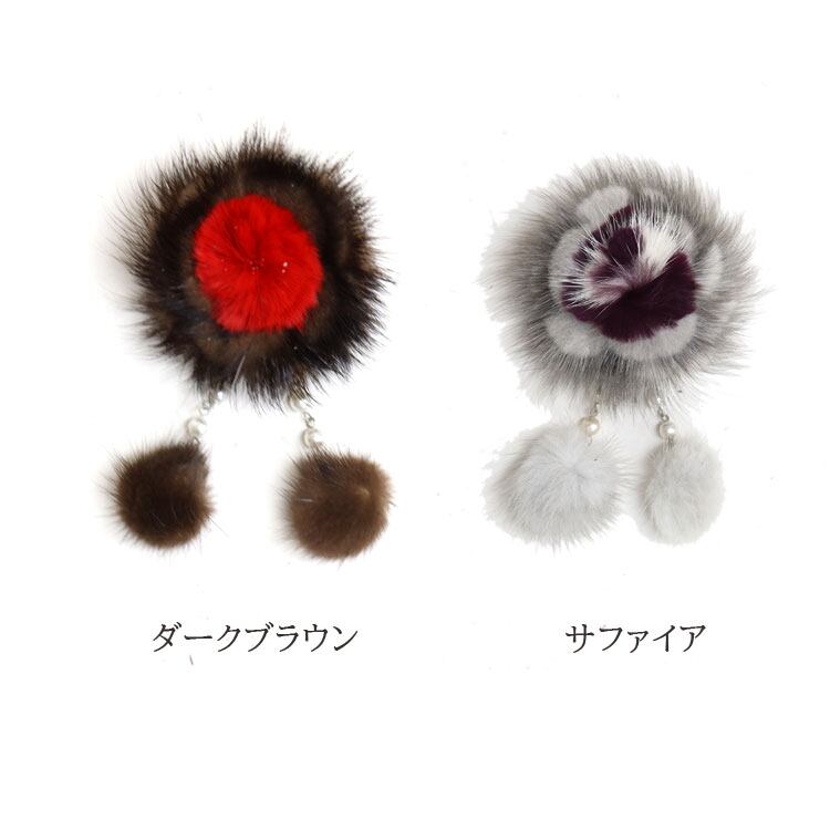 ミンク ファー コサージュ ぼんぼりチャーム付 レディース ギフト プレゼント