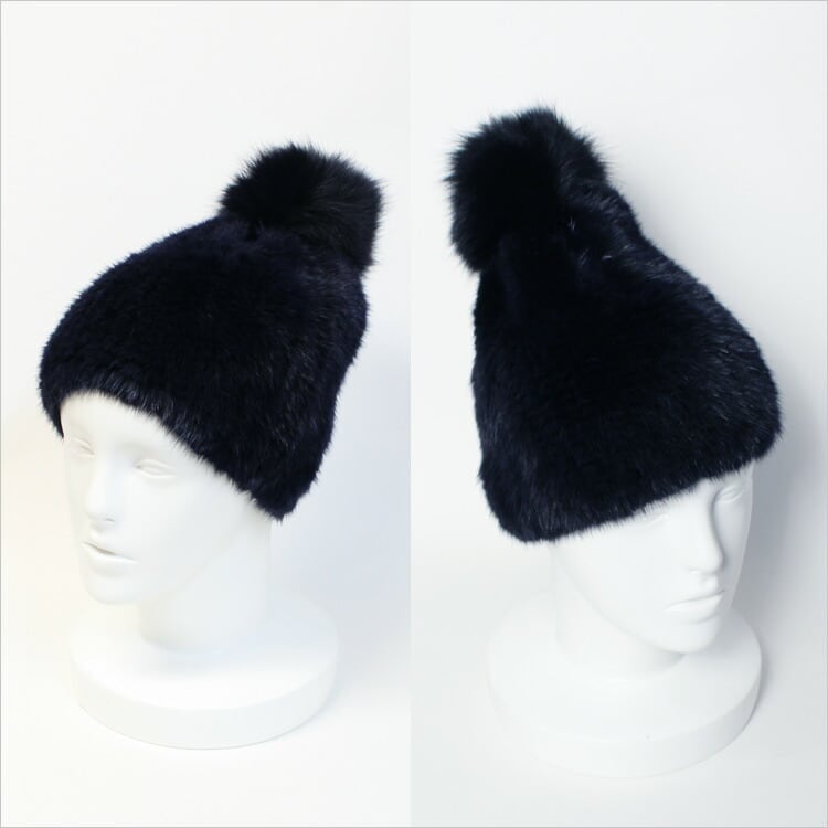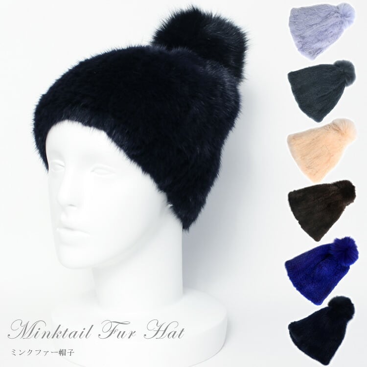 ミンク 編み込み ファー 帽子 キャップ ぼんぼり付 送料無料 レディース ギフト プレゼント ストレッチファー ニット帽
