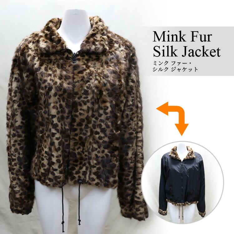 MKG71BA アニマル柄 ミンク ファー シルク リバーシブル ジャケット ブラック 送料無料 レディース ギフト プレゼント