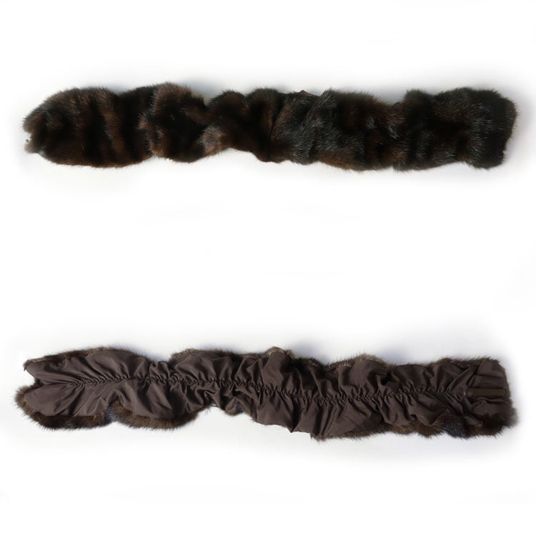 中心にシャーリング(ギャザー)を寄せてくしゅくしゅと表情のあるマフラーに。上質なミンクを使用した小ぶりで使いやすいファーマフラーです。