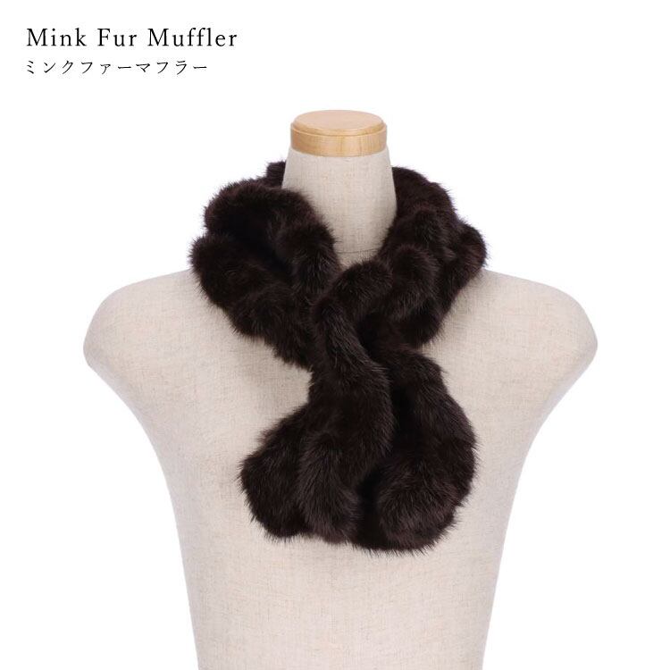 ミンク 編み込み ファー マフラー グレーブラウン MKSSM1