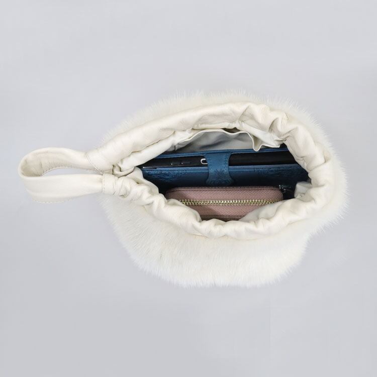 MKUR1NAWH1037 ファーバッグ ミンク リアルファー 巾着バッグ BAG ミニバッグ 手提げバッグ 毛皮 レディース ギフト プレゼント