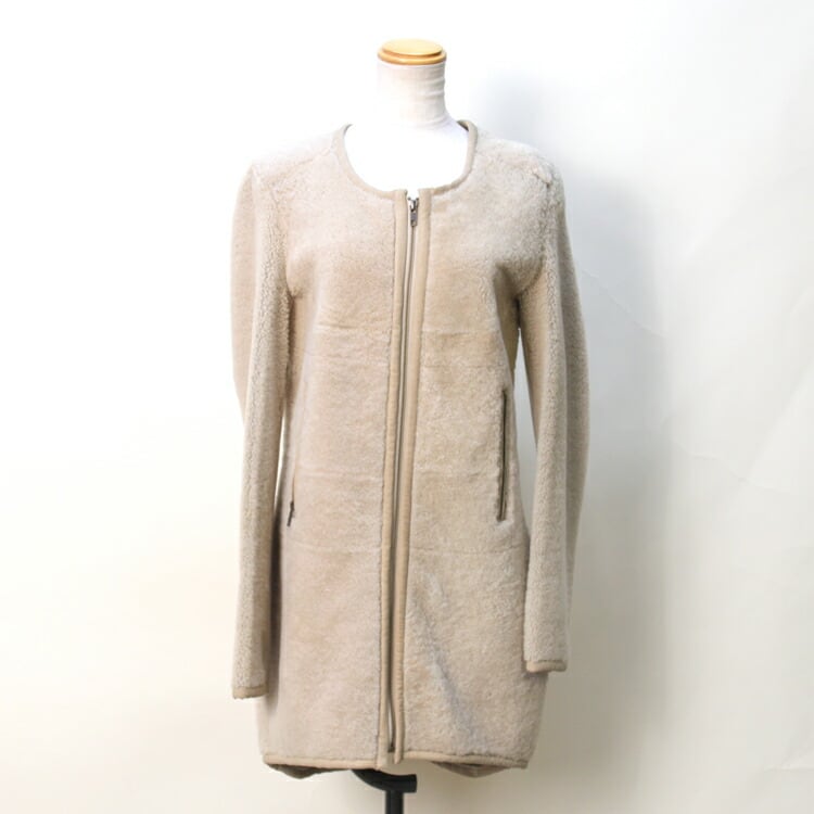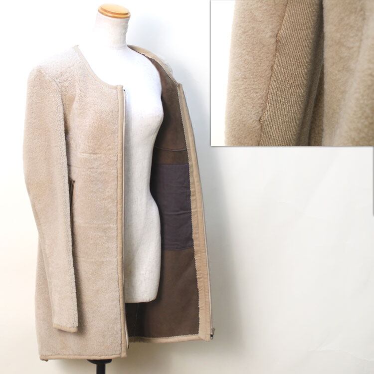 メリノラム ファー コート Wフェイス ノーカラー ベージュ 送料無料 レディース ギフト プレゼント