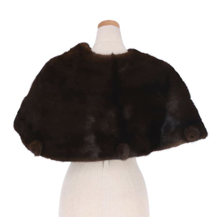 MM2661AMH1037 ミンク ストール ケープ パーティーショール ぼんぼり付き ファーケープ マホガニー ゴージャス リアルファー レディース ギフト プレゼント