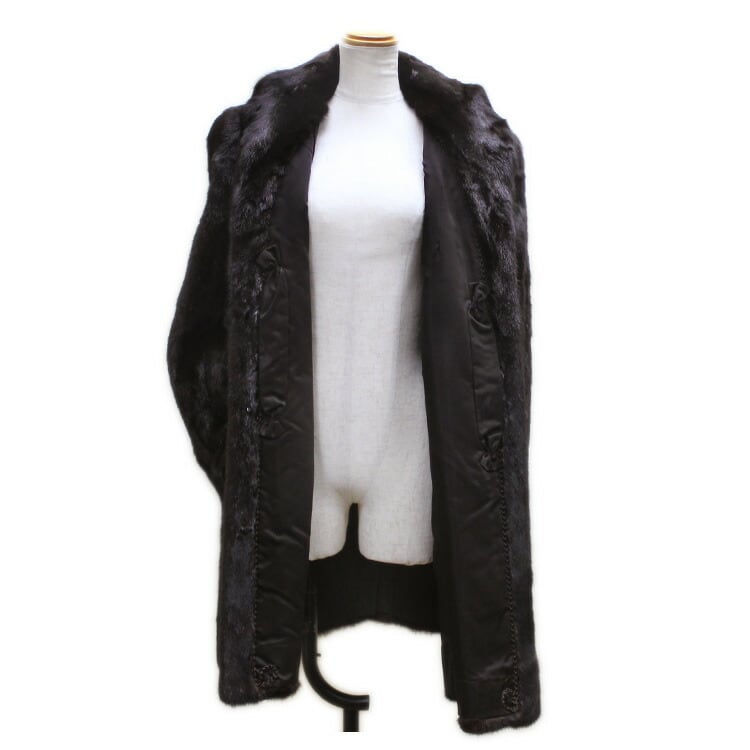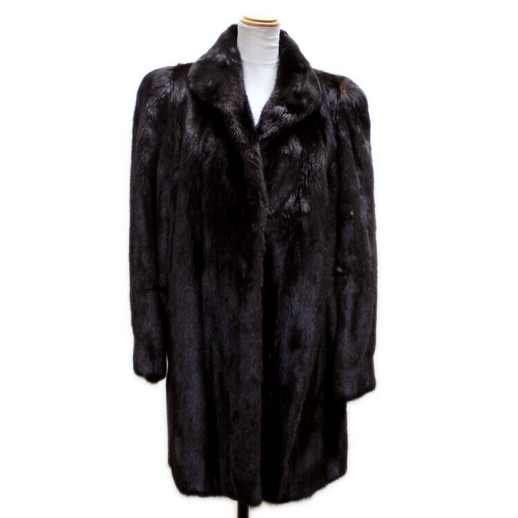 【サイズ(最大部を計測)】着丈約84cm 身幅約110cm 肩幅約39cm 袖丈約63cm 【重さ】約1670g 【留め具】カギホック×3 【ポケット】外側×2 【素材】アメリカンミンク 【裏地】有り