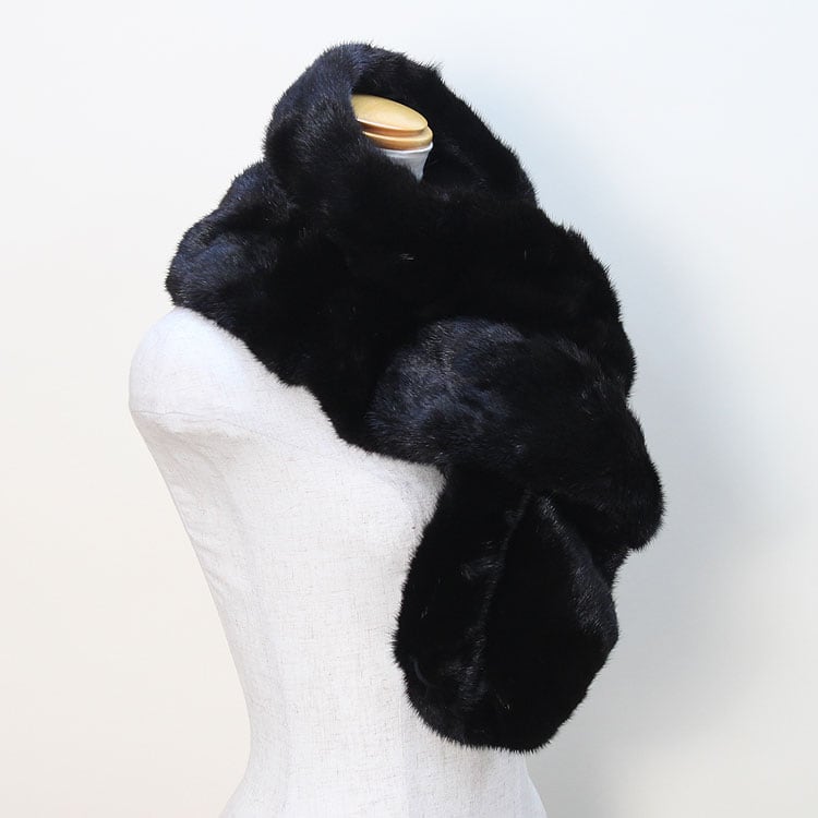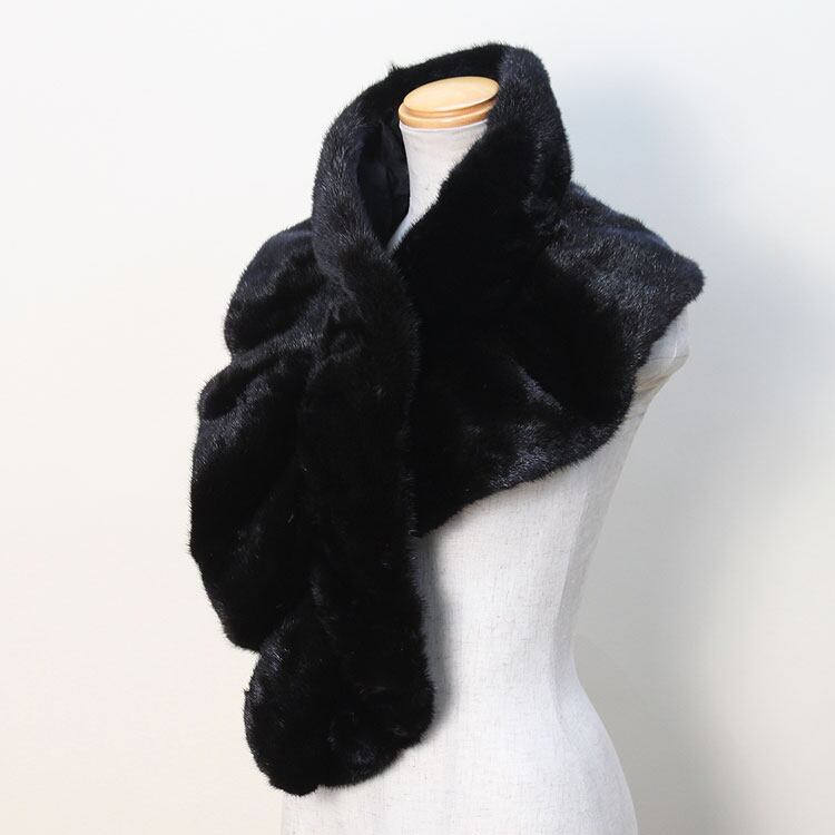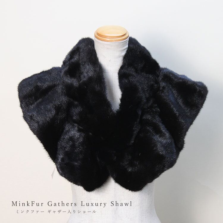MM8121ABK1037 高級 ミンク ファー ショール ギャザー入り ブラック 巻き方イロイロ 送料無料 レディース ギフト プレゼント