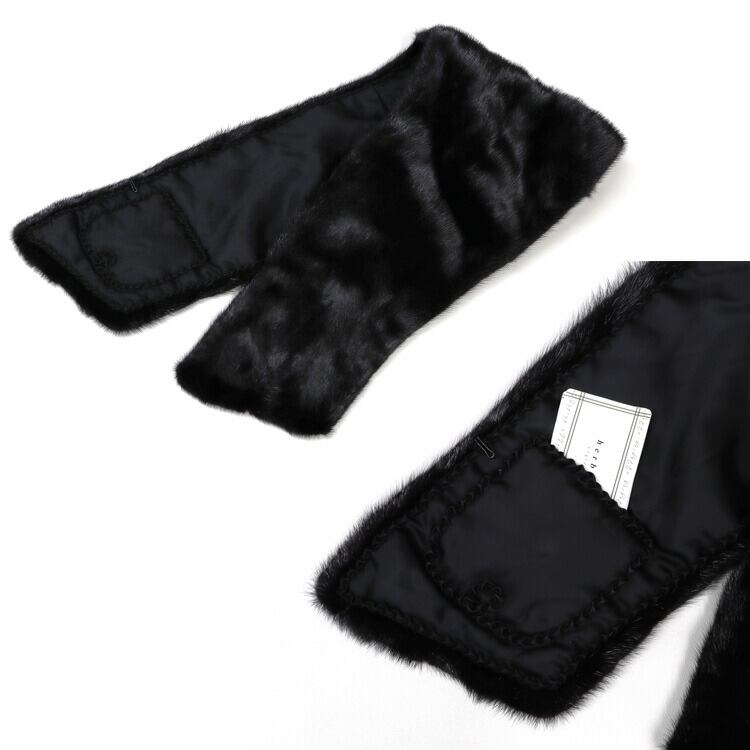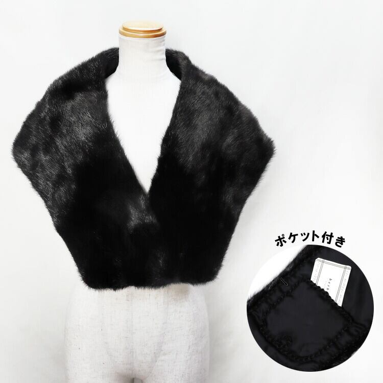 エレガント ミンク ファー ストール ポケット付 ブラック 送料無料 レディース ギフト プレゼント